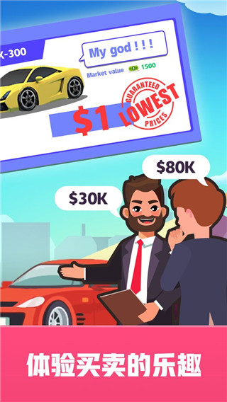 安卓放置二手车大亨开启你的豪车帝国,在这个欧美风放置游戏中,从收购翻新到高价转手,体验完整的二手车交易链。逼真的车辆模型,展示各类经典豪车细节。简单的点击操作,轻松管理你的车行事业。招募销售团队,提升店铺业绩。绚丽的卡通画风,营造专业的汽车卖场氛围。自动放置收益,离线也能持续赚钱。随着规模扩大,解锁限量版超跑等稀有车型。快来施展你的商业眼光,成为最厉害的二手车教父吧。