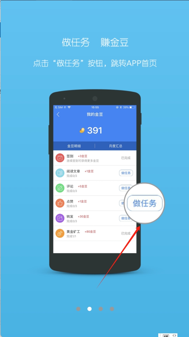 2、点击“做任务”按钮,跳转到APP首页查看任务。