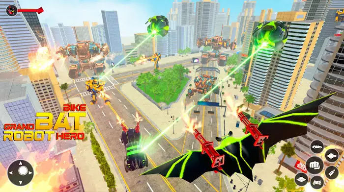 安卓《蝙蝠机器人大战》玩家可以控制喜欢的机甲战士冒险,作为英雄驾驶机器人,消灭所有的坏人,然后取得胜利,玩家可以随意选择各种战斗模式,让你可以有更多的选择,你可以手机更多的金币,在商城里购买零件升级和改造你的机甲,让你的实力更加的恐怖,杀得敌人屁滚尿流。