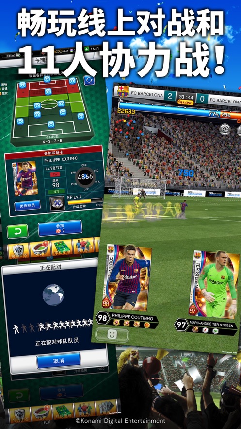 3、实况王者集结游戏拥有实时11人竞技模式,选择11人组成自己的队伍进行比赛,看起来很酷。