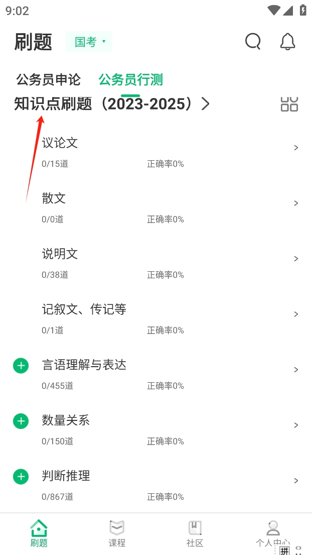 3 、点击“知识点刷题”开始刷题练习。