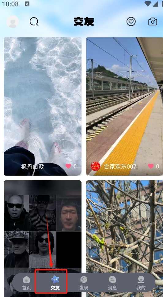 3、点击“交友”按钮,浏览其他用户的动态和照片。