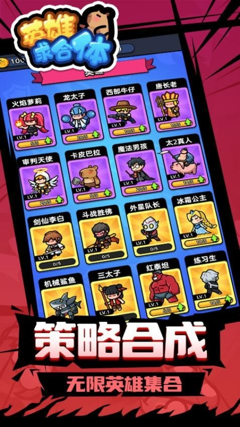 3、合成进化玩法:通过英雄合成提升等级,解锁更强技能与形态,以应对不断升级的敌人攻势,充满成长乐趣。