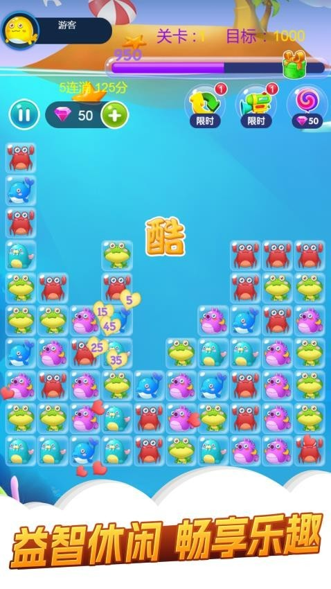 1、萌趣生物形象:将海马、海星等海洋生物融入方块设计,造型可爱,增添游戏趣味性。
