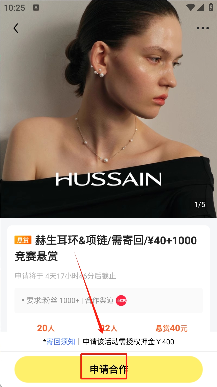 2、点击“申请合作”参与任务。