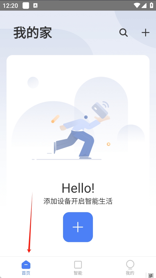 1、点击首页,进入设备添加页面,开始智能家居生活。