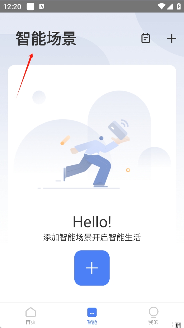 2、点击“智能”选项,添加智能场景,开启智能生活。