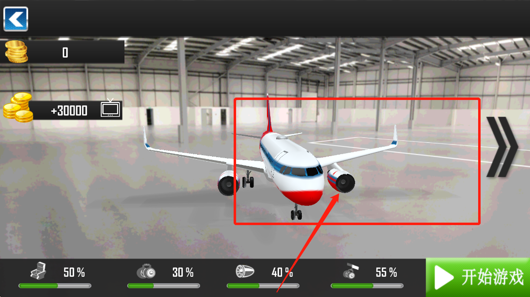 2、在飞机选择界面,通过点击不同飞机图标进行选择。确认选择后,点击开始游戏按钮以启动飞行任务。
