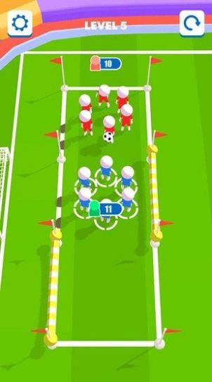 3、这是一场足球运动比赛,比赛中的足球对战以卡通风格展示,为这款游戏添加了趣味性。