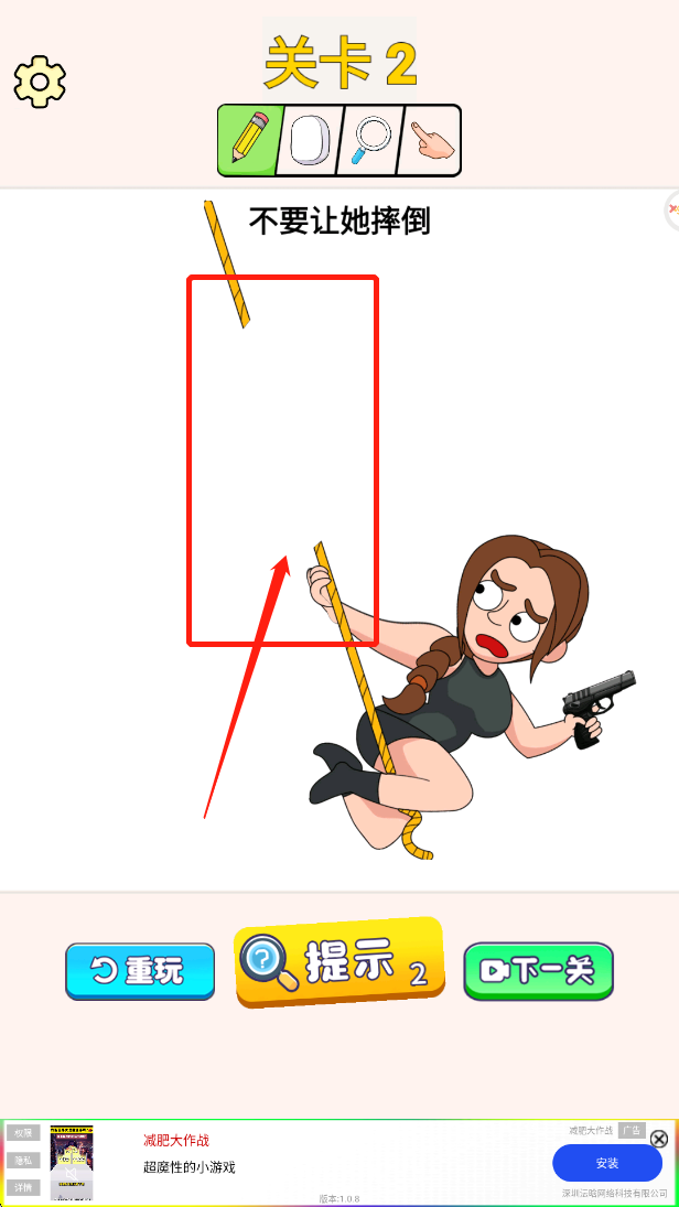 2、在关卡中,根据提示完成特定任务,如修复链子或不要让她摔倒。利用道具和技巧,成功达成目标。