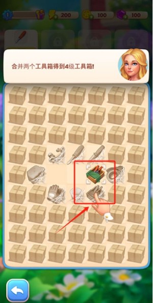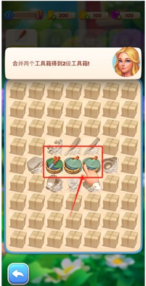 2、按照游戏内的详细指引,我们拖动两个相同的物品在一起,当它们相遇时会自动完成合并,形成新的物品。