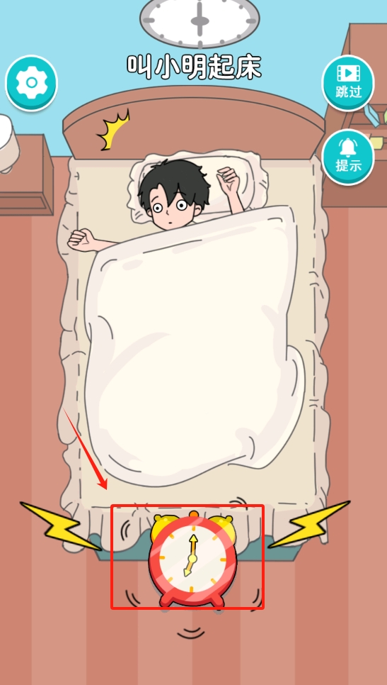 2、在任务列表中选择“叫小明起床”,点击闹钟图标唤醒小明。