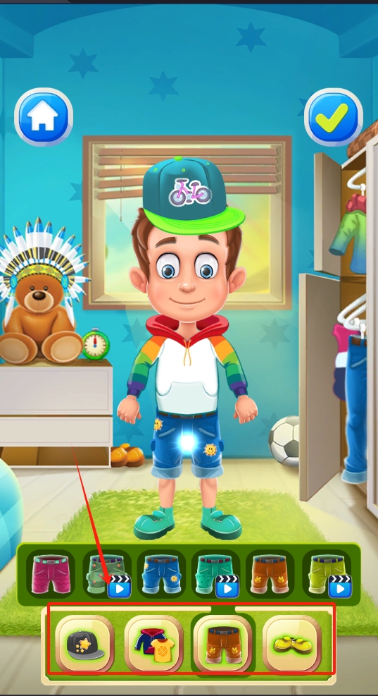 3、在角色换装界面,从下方的选项中选择合适的衣物,点击以完成角色的装扮。