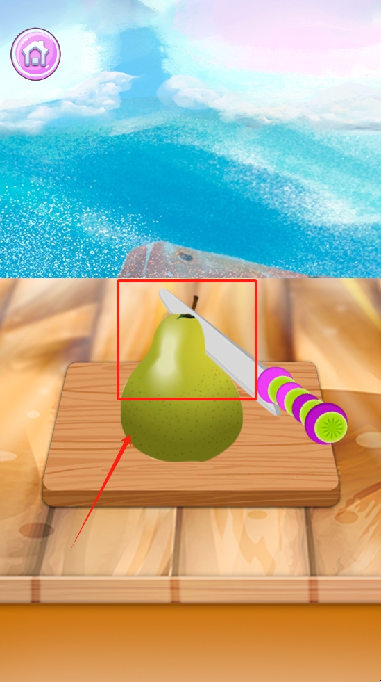 2、在砧板上用刀具将梨子切成薄片,准备作为冰淇淋的配料。
