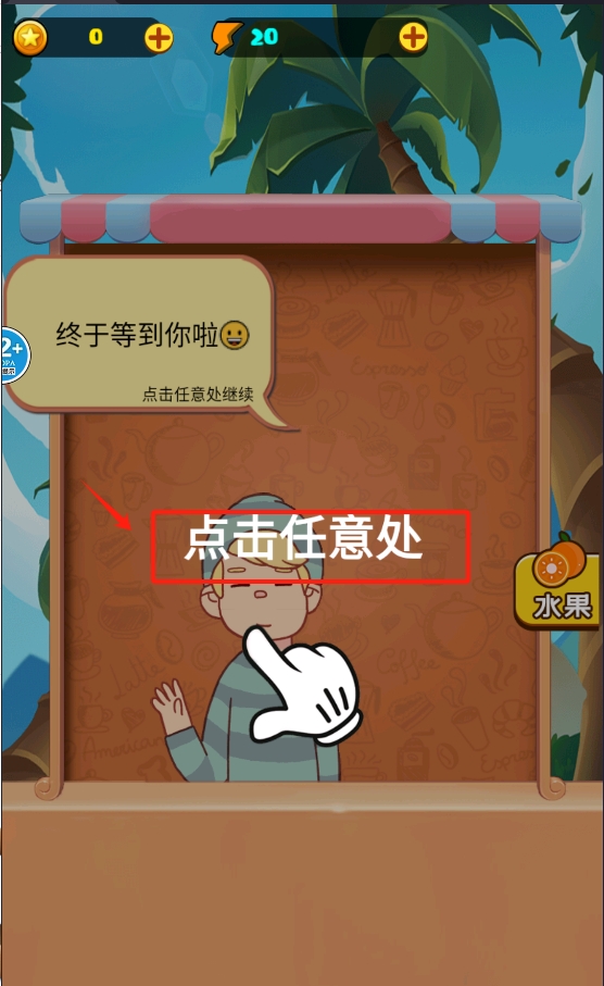1、进入游戏界面后,点击屏幕任意位置以继续。这一步帮助你熟悉游戏的基本操作。