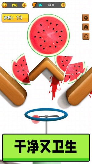 2、创意关卡设计:每关需要收集的果汁量各不相同,部分水果藏有惊喜彩蛋,切割后触发特殊动画效果。