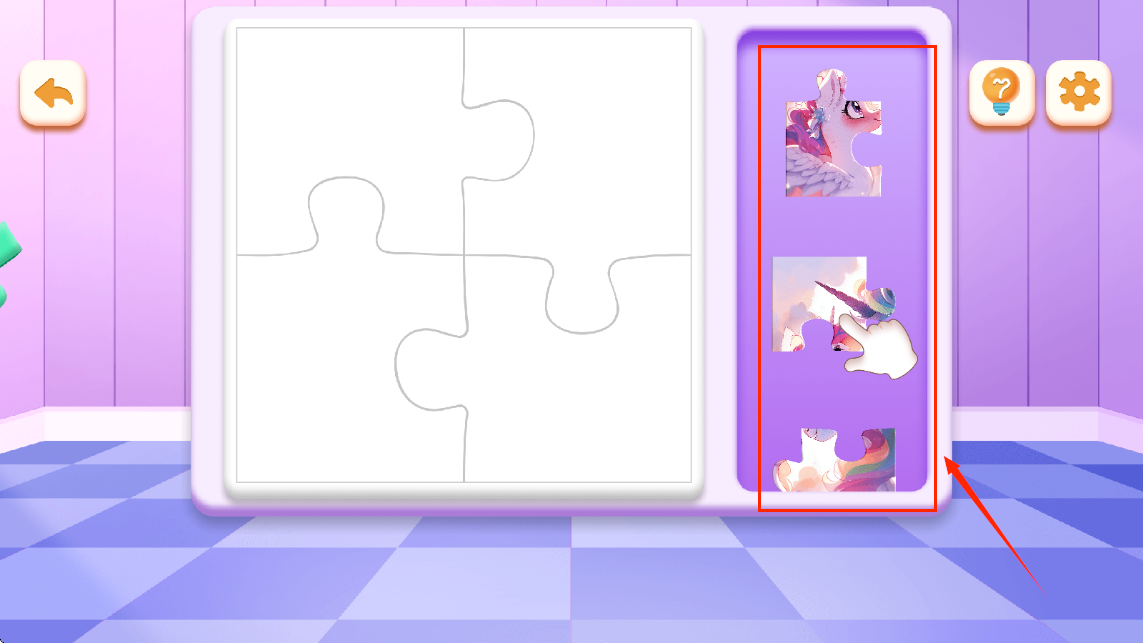 1、拖拽点击超简单:两根小手指就能旋转拼图块,按住泡泡滑一滑,连2岁娃都能轻松上手。