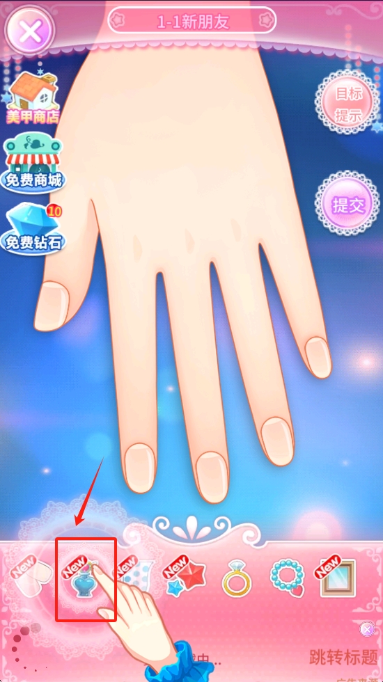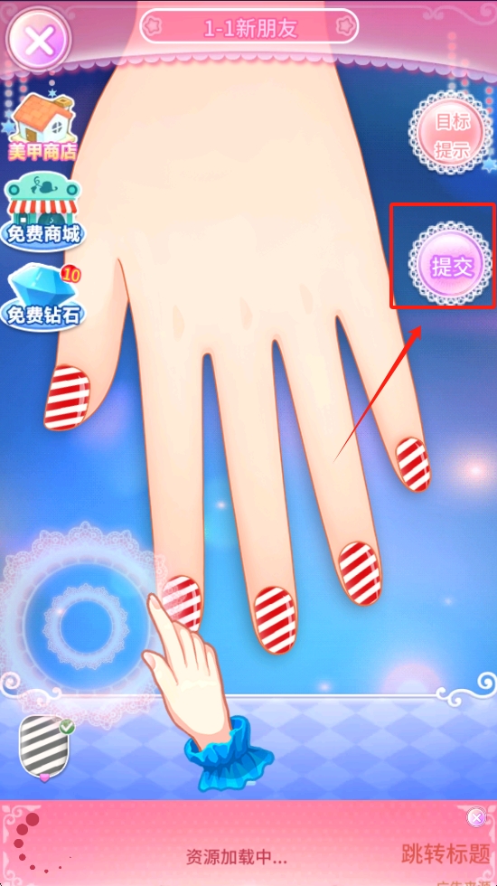 3、选择好样式后,点击相应的指甲进行应用,完成美甲设计后点击“提交”按钮。