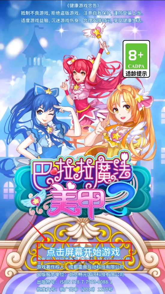 1、点击“点击屏幕开始游戏”按钮,进入游戏主界面,开始你的美甲创作之旅。