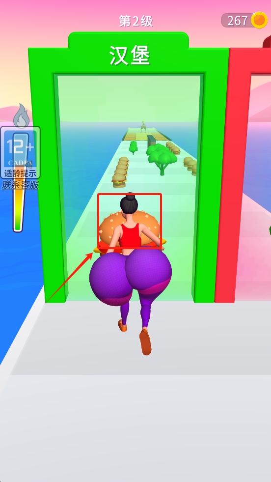 2、在游戏界面中,收获汉堡等道具,赢得金币,增加得分。