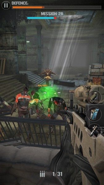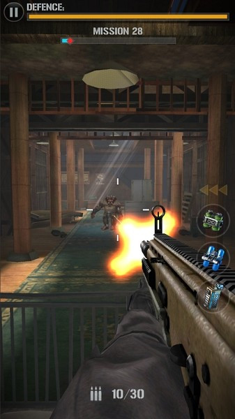 3、游戏采用第一人称视角,玩家要射击并消灭各种僵尸。画风逼真,射击特效非常酷。