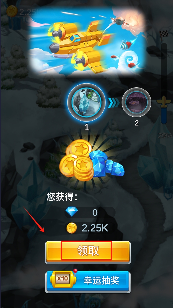 3、完成关卡后,点击“领取”按钮来获取本关的奖励。奖励通常包括金币和其他游戏内货币。