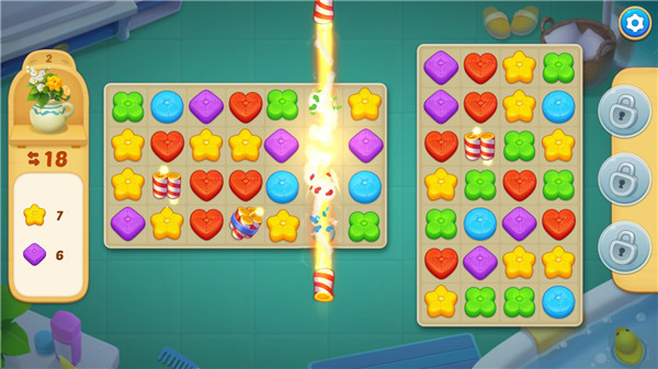 4、当消除多个相同的抱枕时,还可以获得强有力的道具,更好的完成关卡;