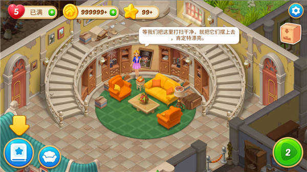 6、使用获得的星星用来解锁更多的全新家具,装扮你的房子,打造独一无二风格的庄园;