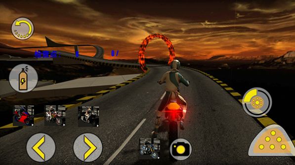 1、玩家需通过重力感应或虚拟按键控制摩托车的行驶方向和速度。