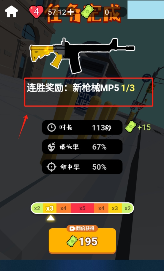 3、任务完成后,可获得新枪械MP5及金币奖励。