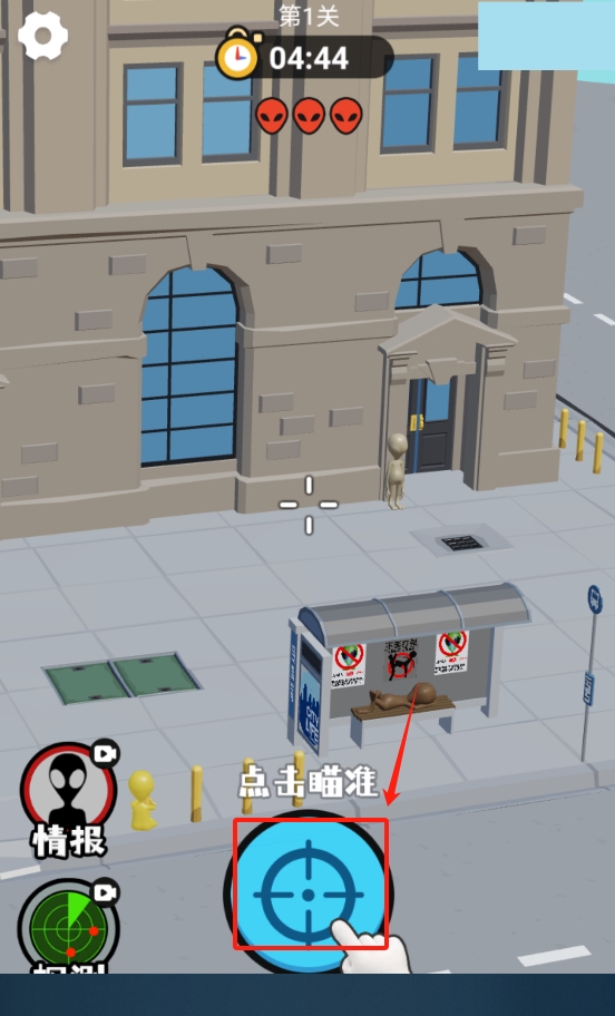 2、点击屏幕下方的瞄准镜,对准外星人目标,进行瞄准。