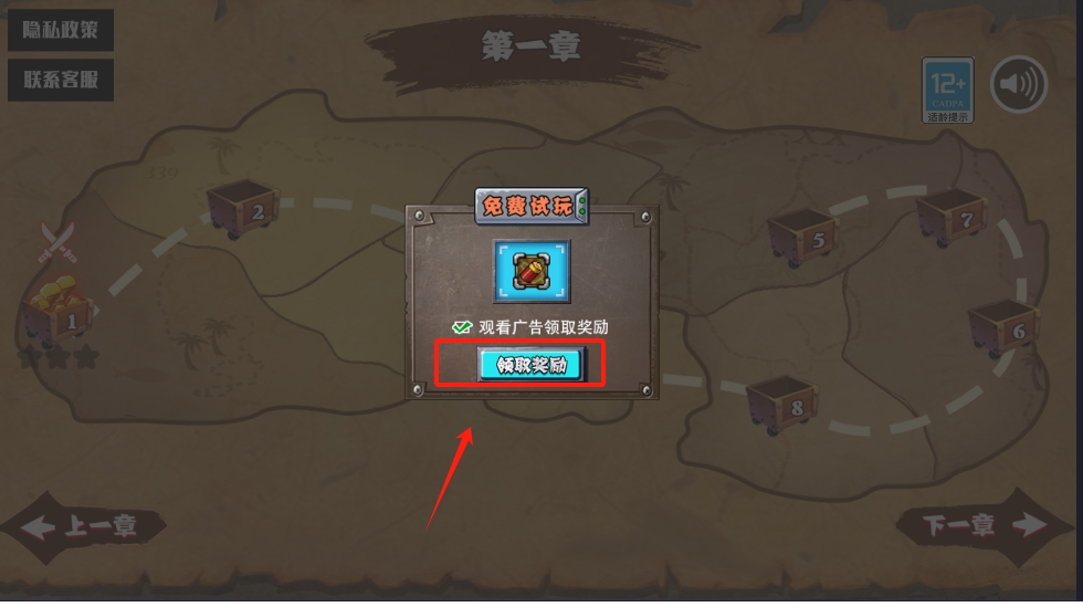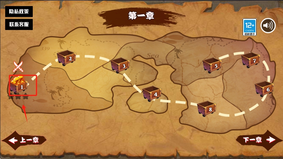 1、点击地图上的关卡 1 图标,进入游戏关卡,开始冒险。