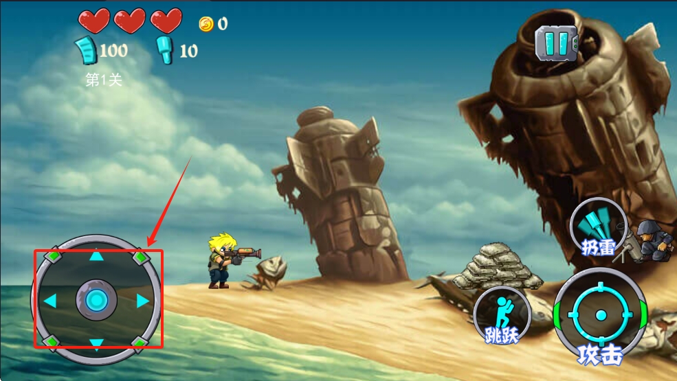 3、通过左下角摇杆控制角色移动,点击右下角按钮进行攻击,击败敌人。