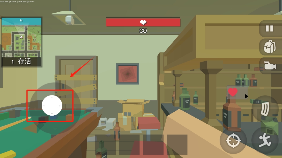 3、通过底部白色摇杆控制游戏角色移动,搜寻敌人进行战斗。