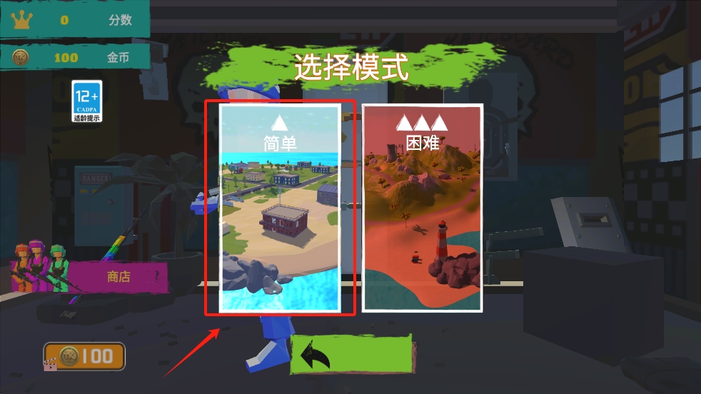 2、选择游戏难度模式,如 “简单” 模式,点击进入游戏。