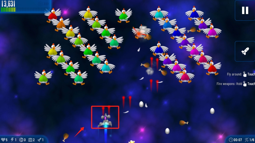 安卓小鸡入侵者3带来欢乐的弹幕射击体验,背景设定在热闹的复活节。操纵战机左右移动,发射餐具击退成群袭来的怪鸡。敌人从不同方位出现,增加了挑战性。注意躲避快速坠落的陨石,拾取随机掉落的强化道具提升火力。支持单人闯关或双人合作,在弹幕与陨石雨中展开刺激的防御战,守护地球免受鸡群侵袭。