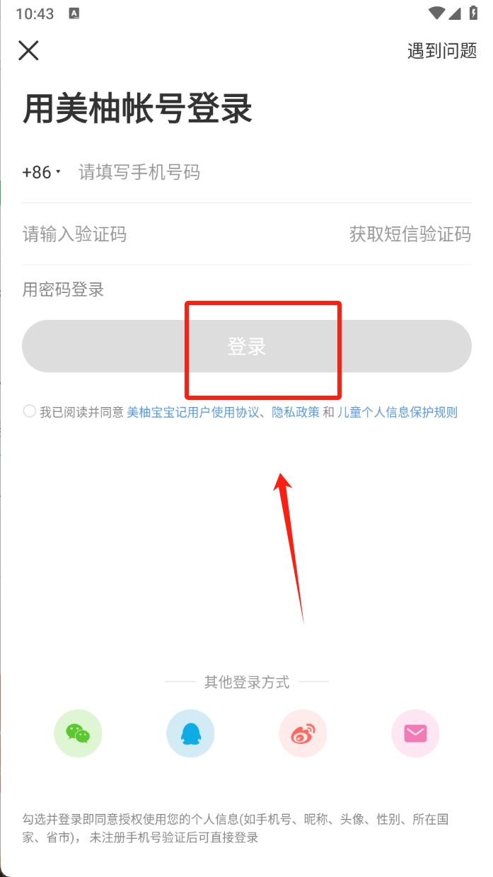 1、第一步:在登录页面,点击“美柚账号登录”按钮,选择使用美柚账号进行登录。这样可以方便地使用已有账号信息。