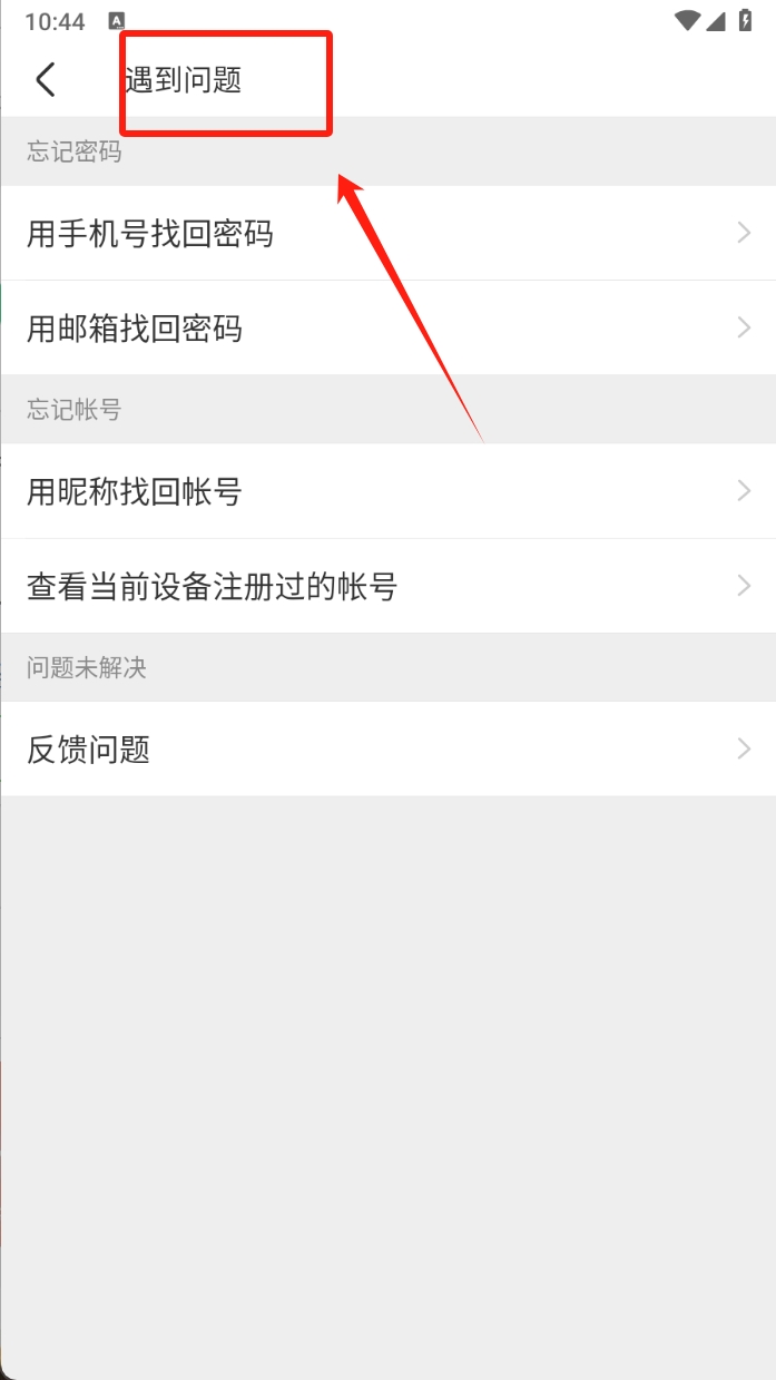 3、第三步:如果遇到问题,点击“遇到问题”链接,选择相应的帮助选项。这将引导你解决忘记密码或账号等问题。