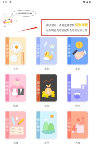 1、选择一个记账场景,如“日常”、“宝宝”等。