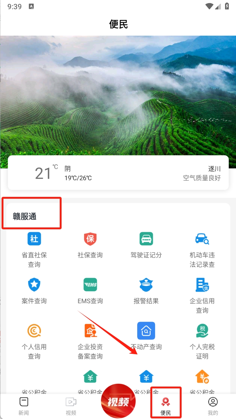 3、点击底部导航栏的“便民”按钮,进入便民服务页面,使用各种便民查询和办理服务。