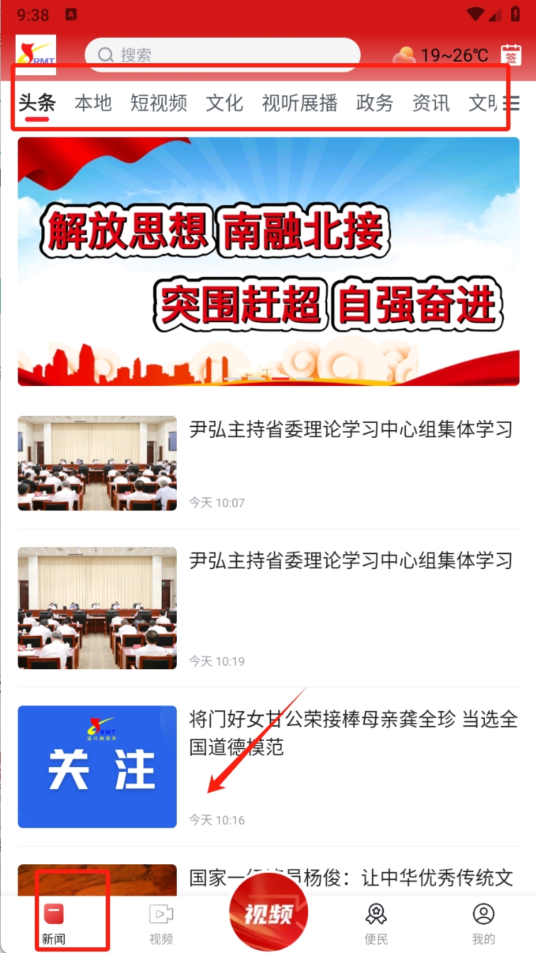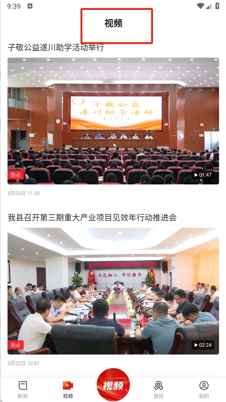 2、点击底部导航栏的“视频”按钮,进入视频页面,观看最新的新闻视频和热点报道。