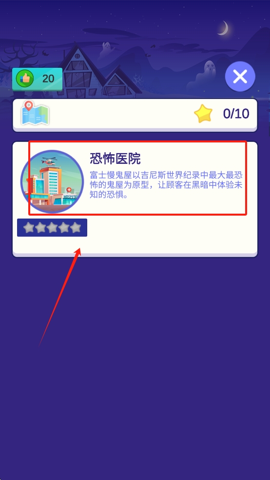 2、在恐怖医院界面,点击医院图标,了解详细信息,升级鬼屋体验。