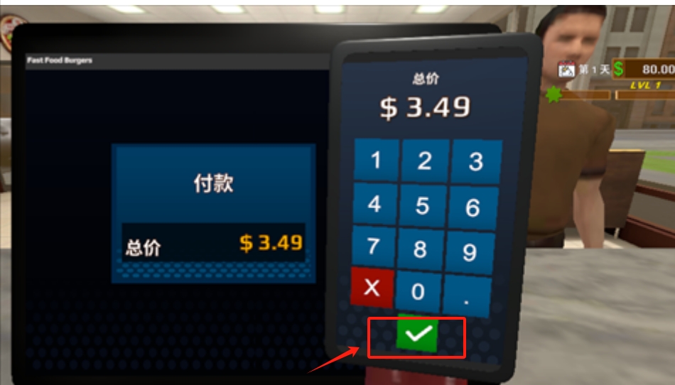 2、将会出现客人,点击电脑接取新的订单,收钱。