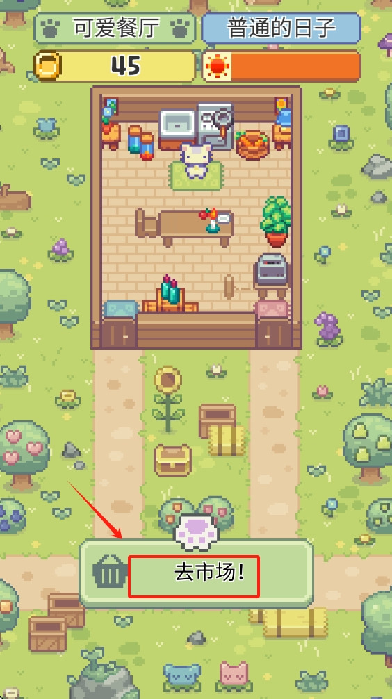 1 、点击 “咱们开店铺” 按钮,进入游戏界面,开始经营猫咪餐厅。