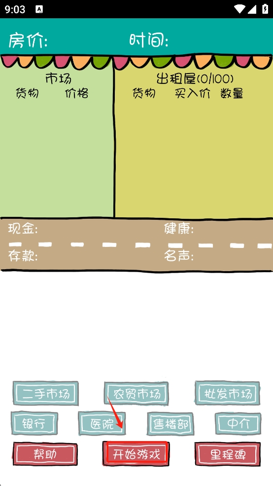 1、点击开始游戏按钮,正式开启精彩刺激的房产交易模拟游戏。