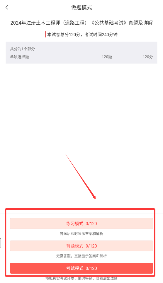 3、进入模拟题库进行随机练习或专项训练,每道题目均附带详细解析与答案参考。可以自主选择练习模式。