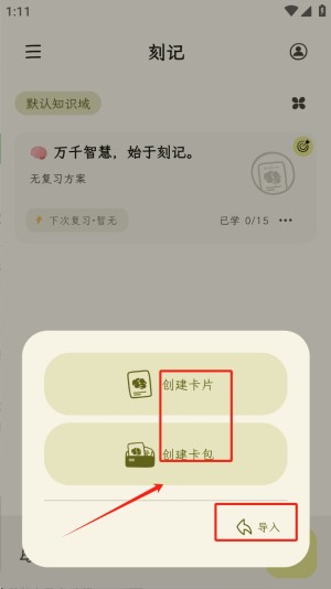 4、最后,您可以选择“创建卡片”或“创建卡包”,也可以点击“导入”按钮来导入已有的卡片数据。