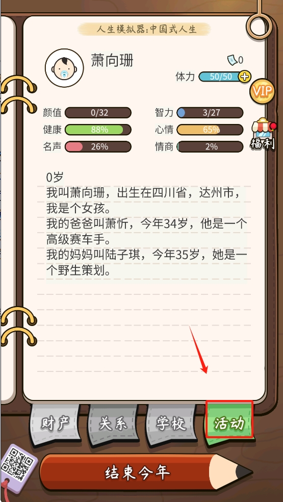 2、无限可能的随机事件:系统会随机生成家庭背景、天赋属性,甚至突发意外,比如中彩票等。
