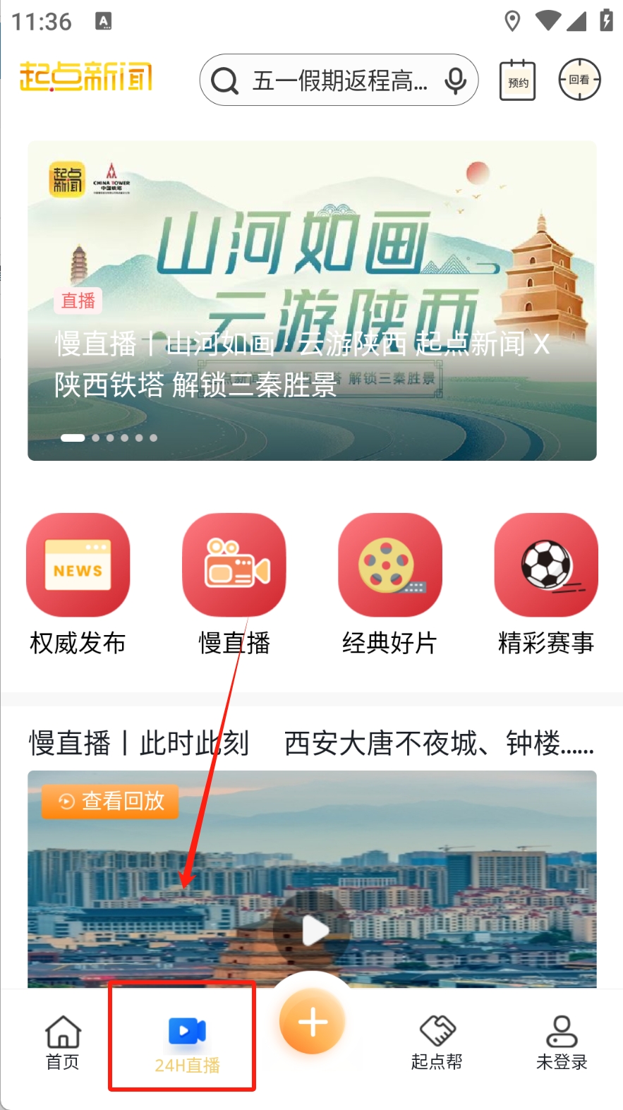 2、观看直播:点击底部导航栏的“24H直播”图标,查看直播内容。