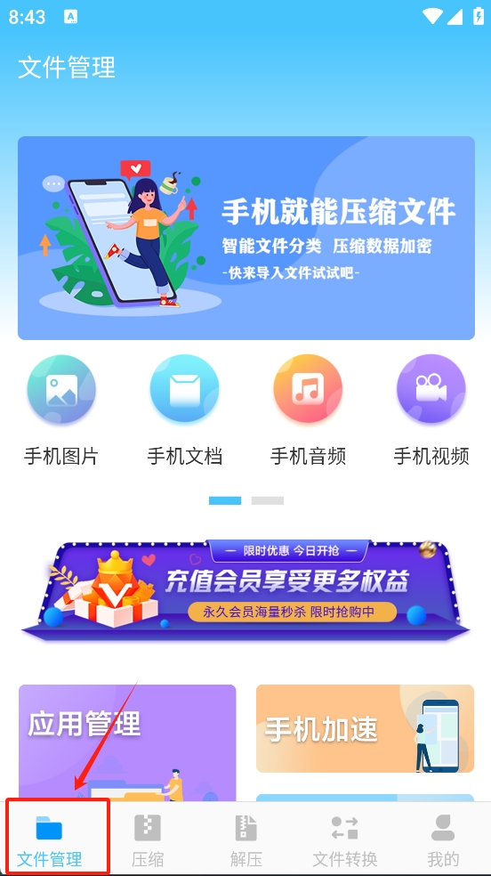 1、点击“文件管理”图标,进入文件管理界面。